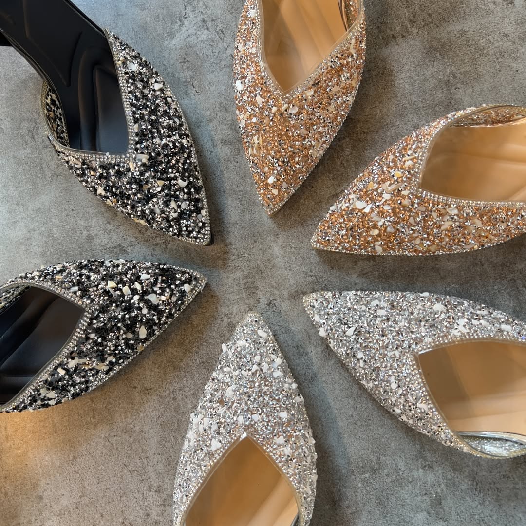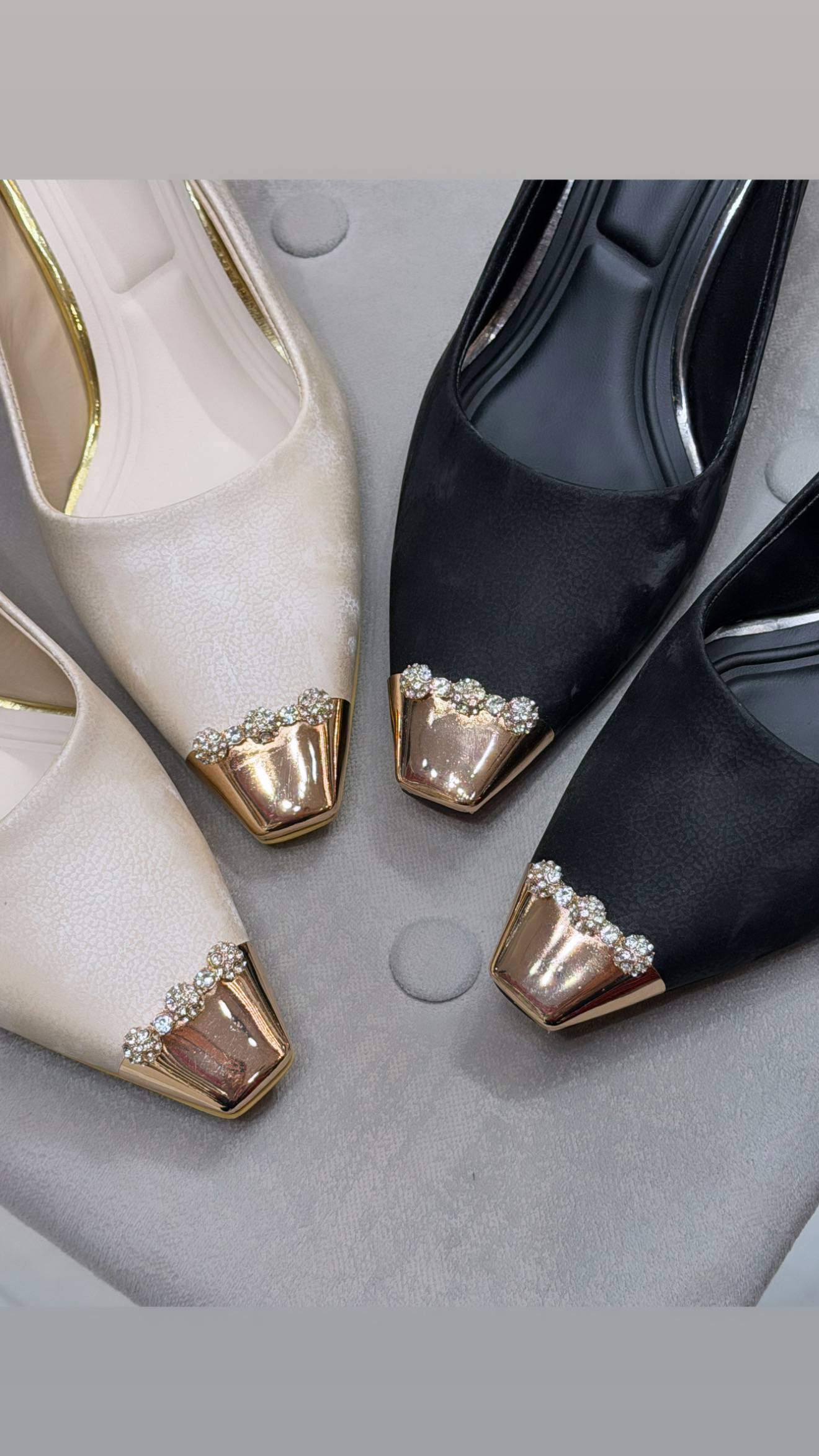 کفش مجلسی زنانه ولنتینو | پاشنه کریستالی و نوک فلزی