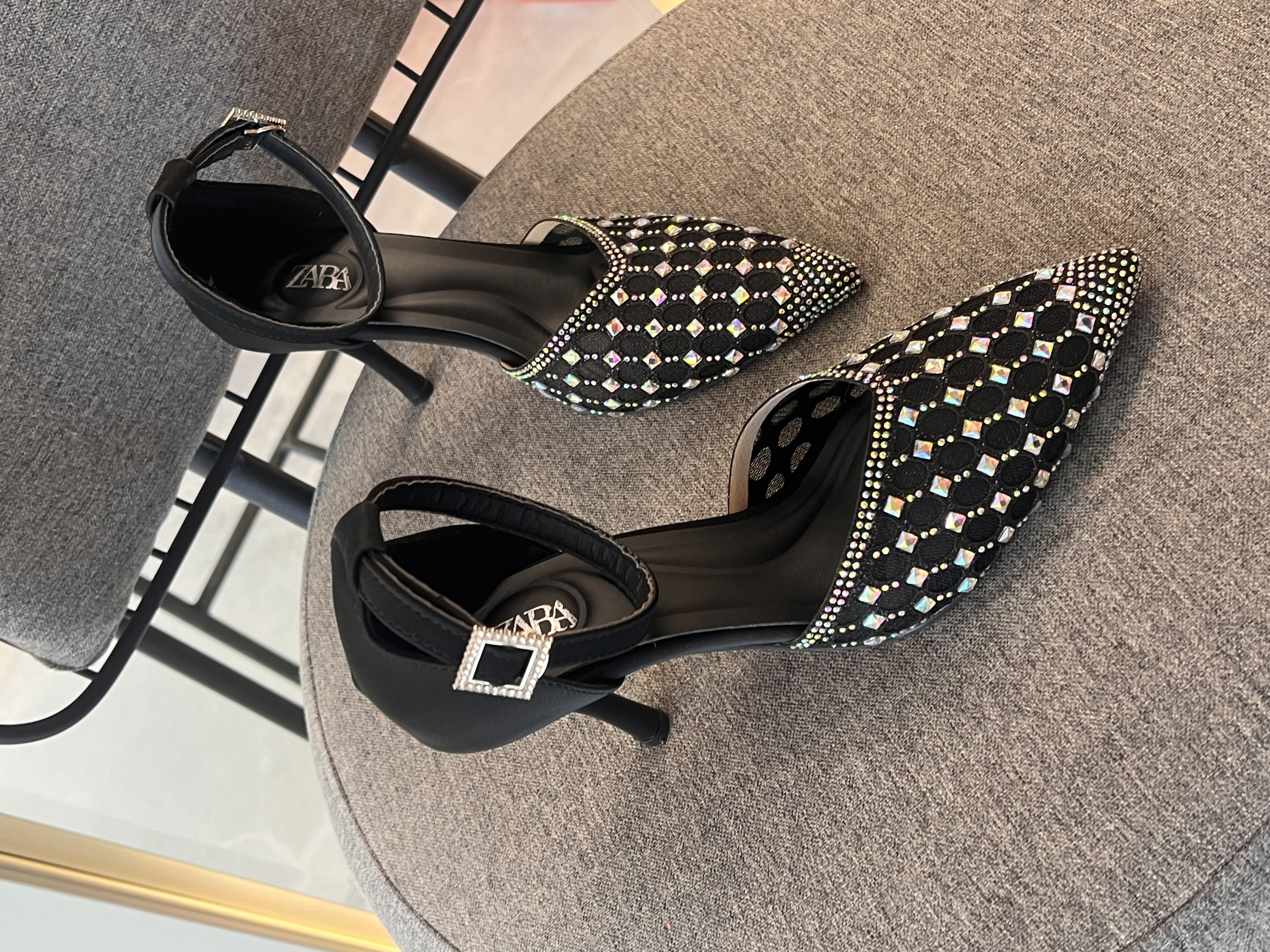 کفش مجلسی زنانه ولنتینو | پاشنه کریستالی و نوک فلزی