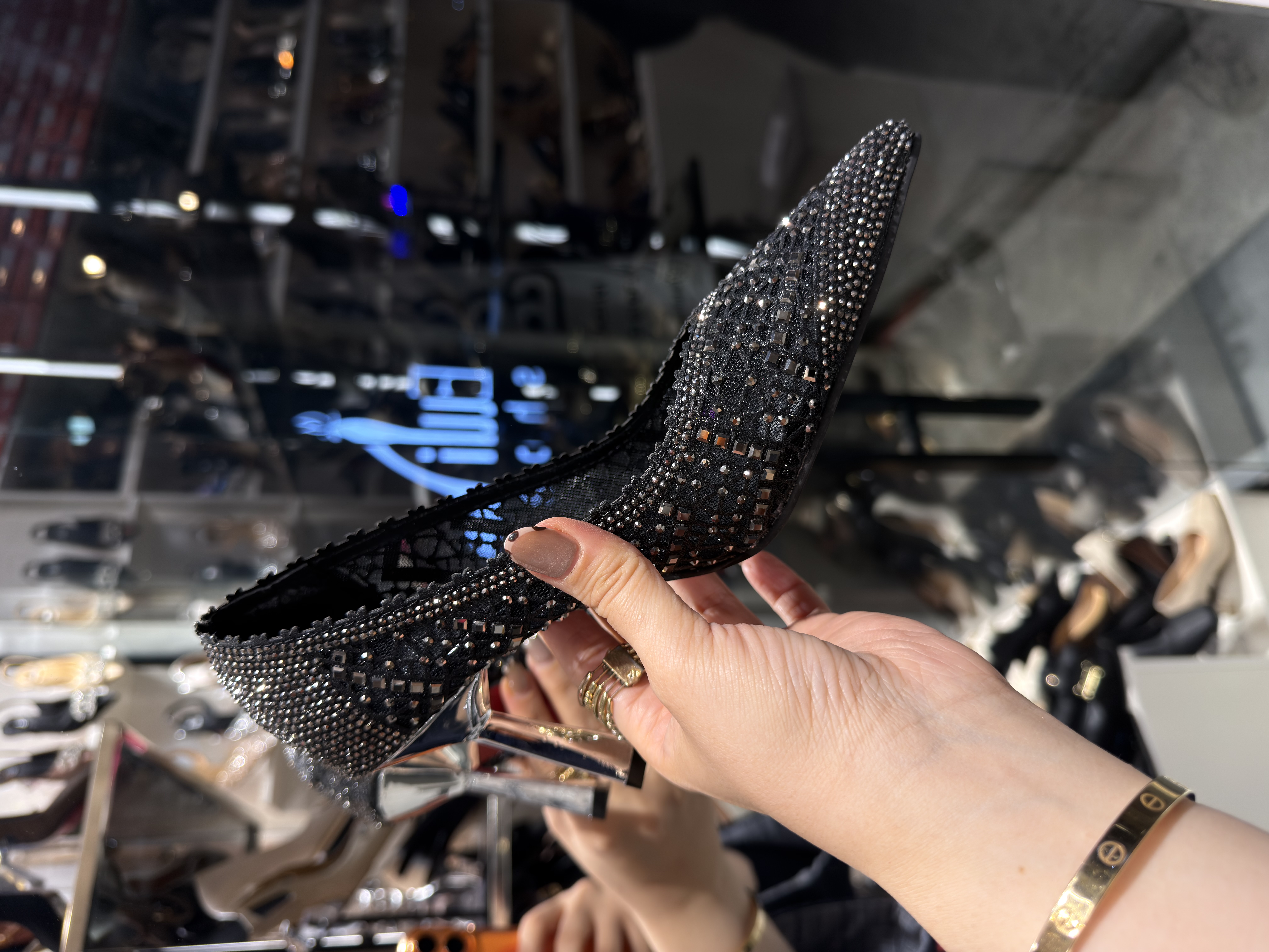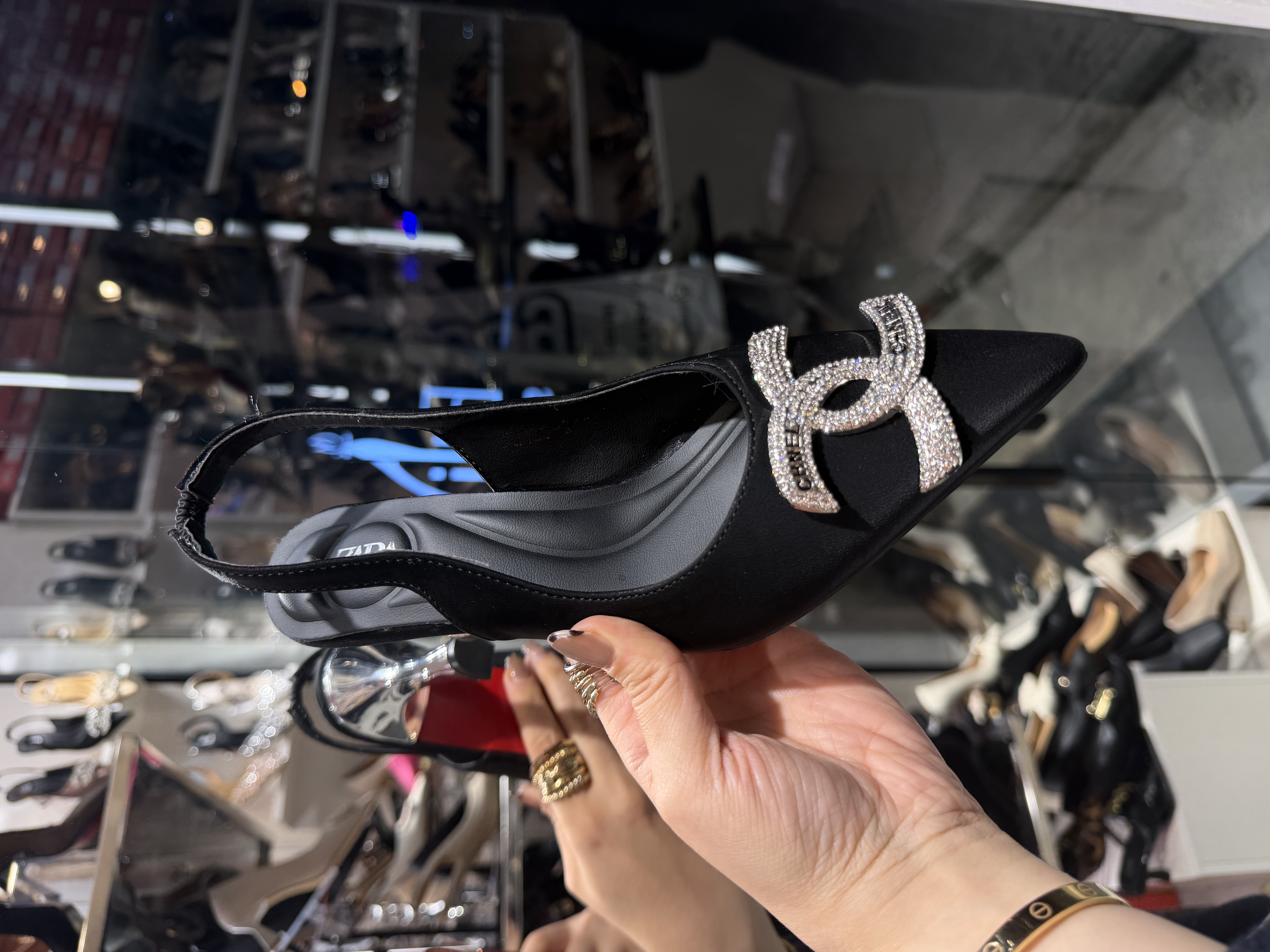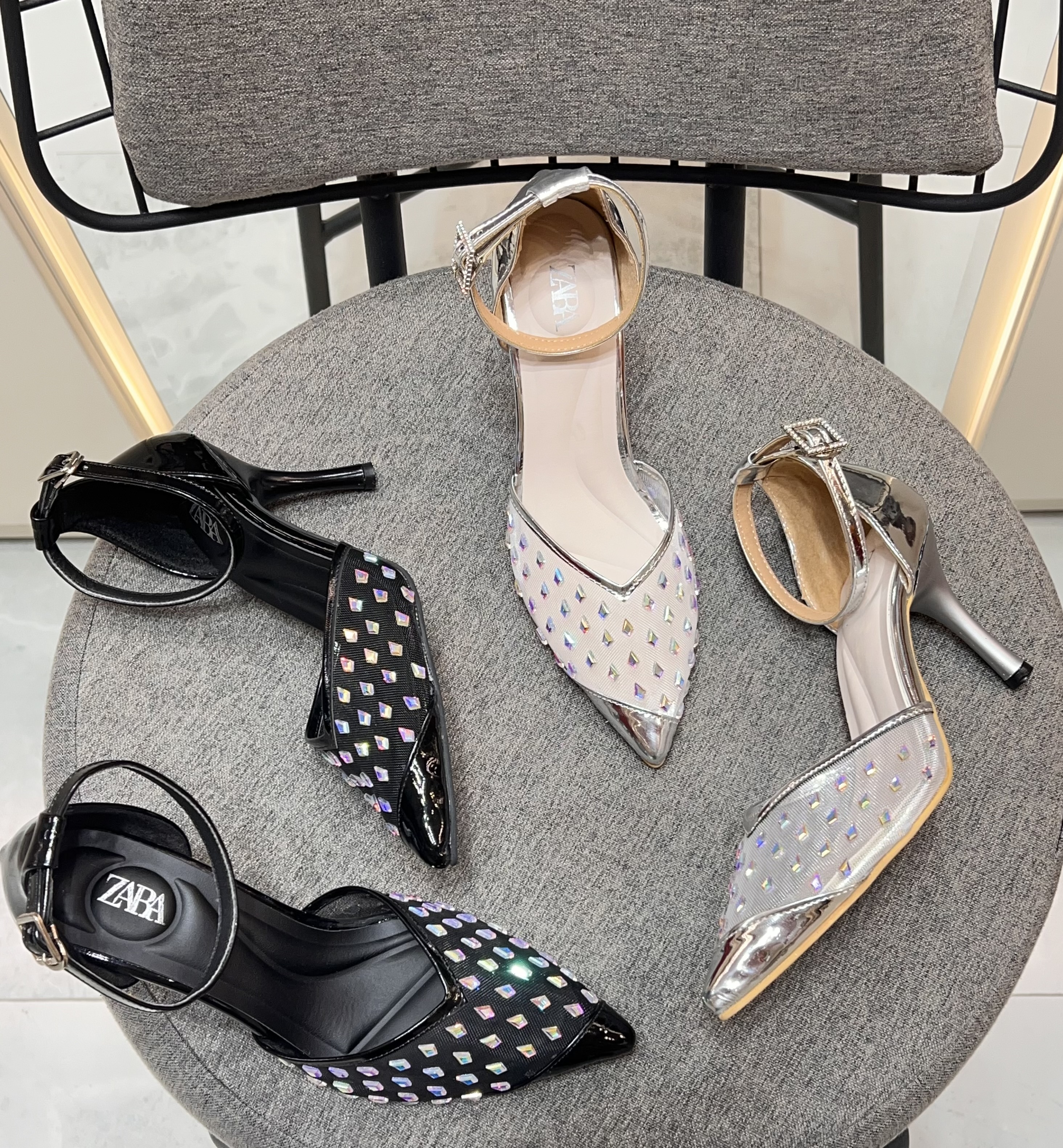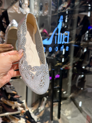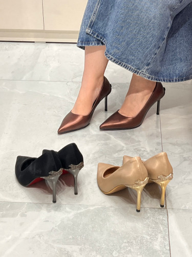 کفش مجلسی زنانه ولنتینو | پاشنه کریستالی و نوک فلزی
